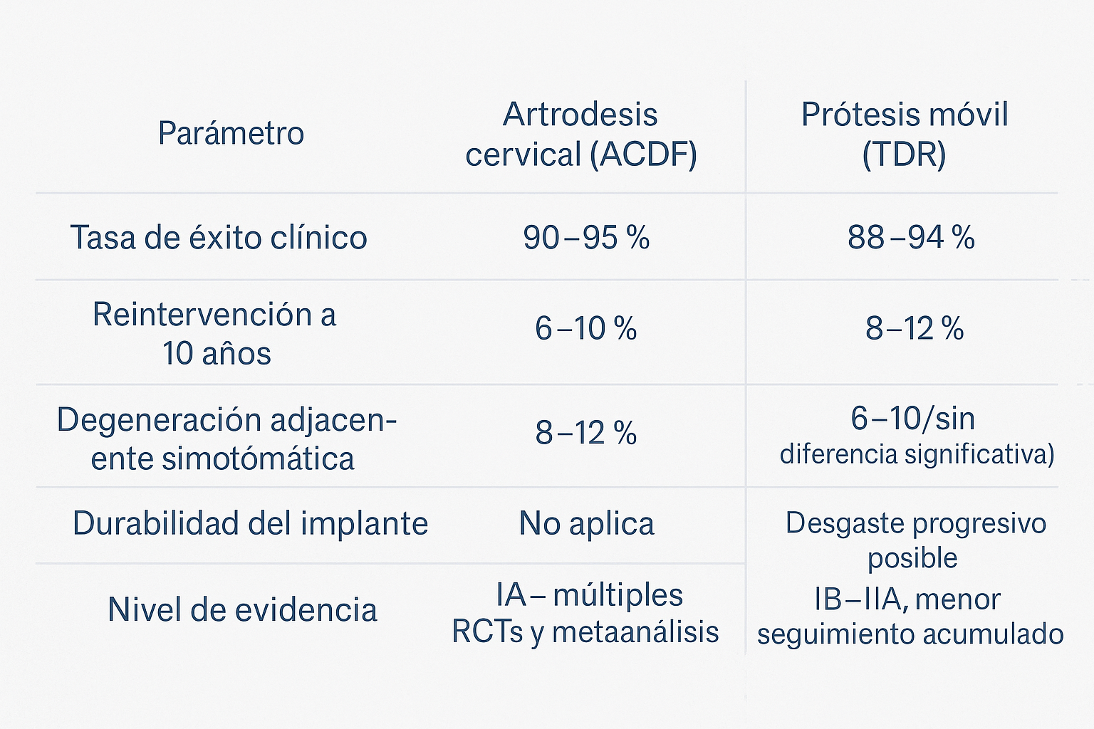 Artrodesis cervical vs. prótesis móvil: qué dice la evidencia